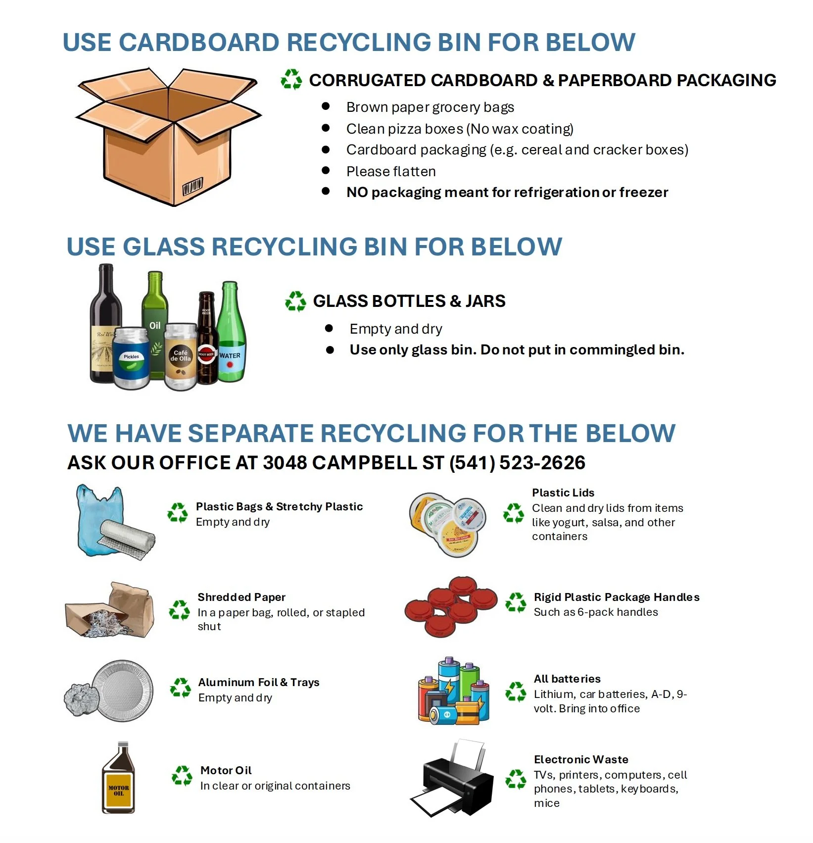 Recycling updates for Baker City and Baker County! We now provide curbside recycling to Baker City Residential and Commercial customers. Click here for the latest updates. ♻️